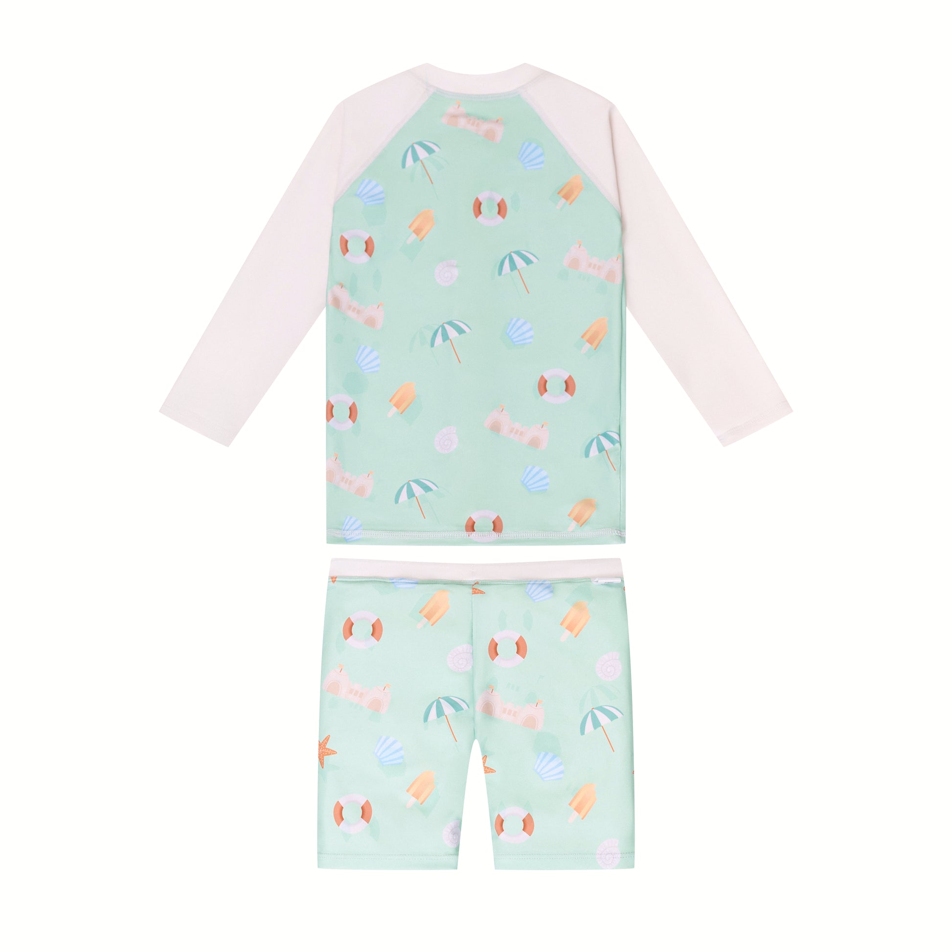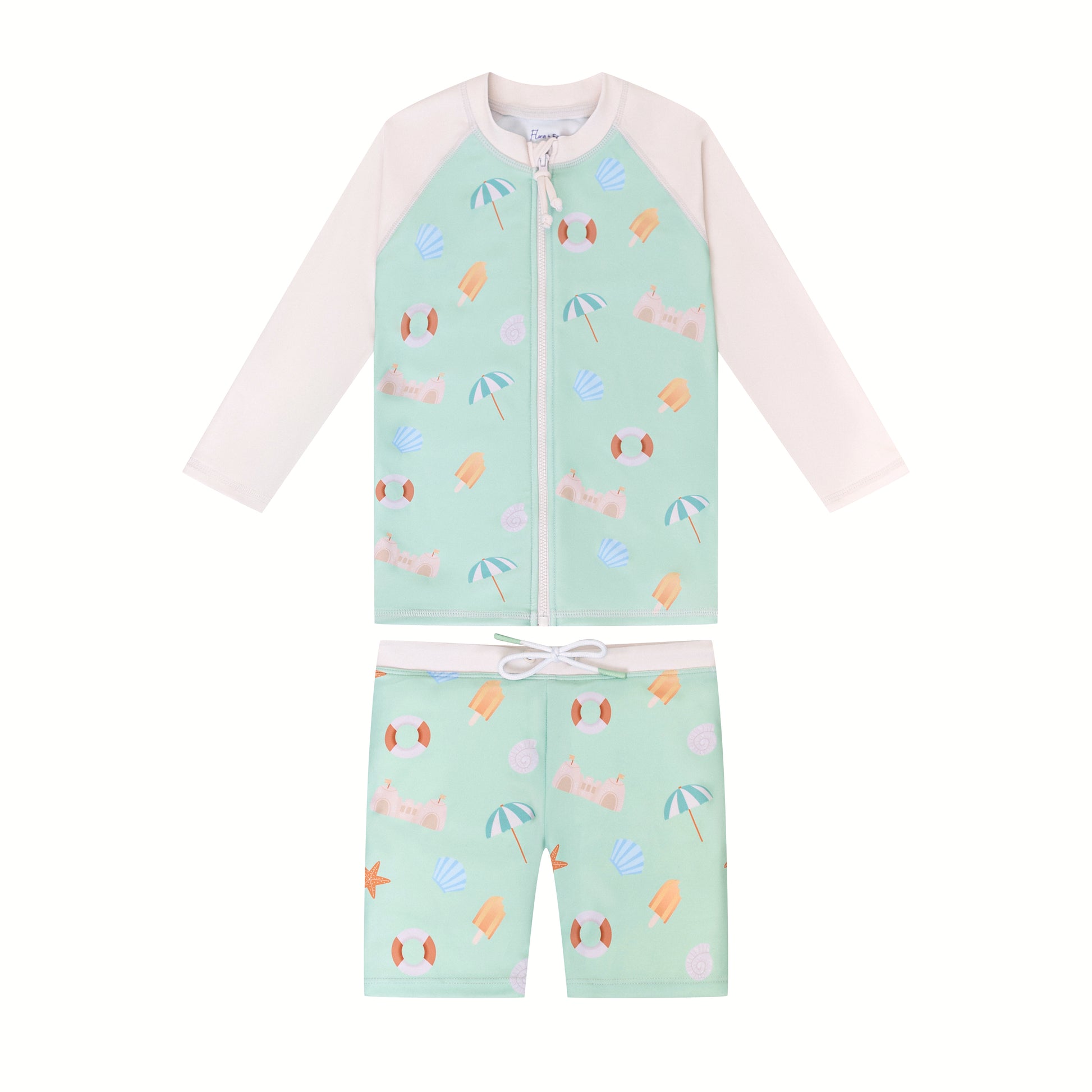 Keep your little one safe and stylish during their water adventures with this adorable swimsuit set. Designed with parents' priorities in mind, it offers a range of features that prioritize safety, sun protection, rash guard functionality, and cute designs.